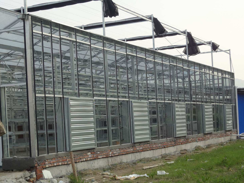 文絡(luò)溫室的骨架采用鋼架和鋁合金構(gòu)成,透明覆蓋材料為4mm厚平板玻璃。溫室屋頂形狀和類(lèi)型主要有多脊連棟型和單脊連棟型兩種。