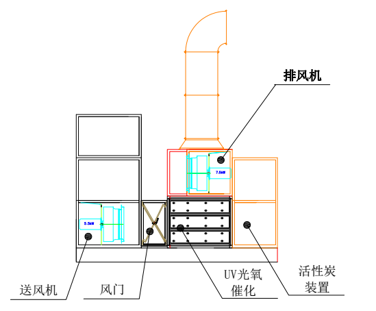 最后,通過三重處理的氣體經(jīng)風機抽排到大氣中。